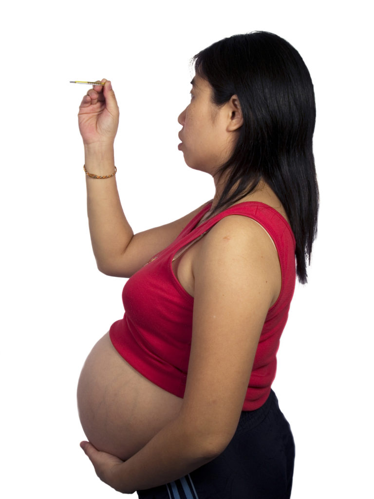 Use your thermometer to assess your temperature. You might be running a fever when your body temperature exceeds 38.5 deg C. Observe your symptoms as a persistent high fever can affect your unborn child. If you find that your temperature isn’t going down after one to two days, see your doctor.