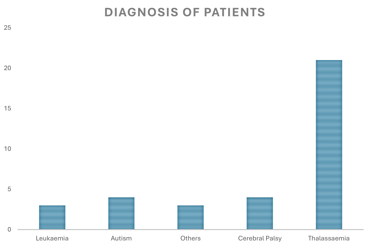 | July, 2016 | 06 Years | F | Allogeneic | Thalassemia Major | 25 |